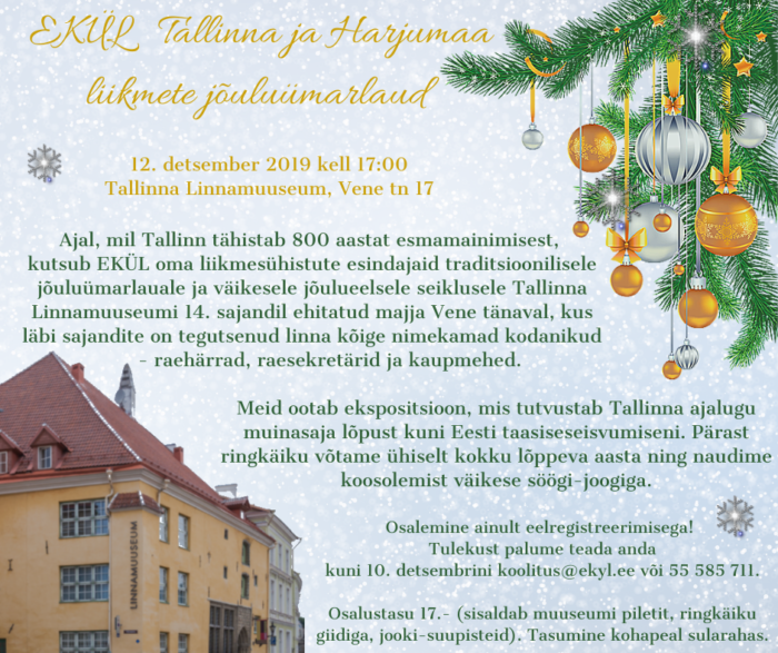 EKÜL Tallinna ja Harjumaa liikmete jõuluümarlauale on oodatud ka liidu liikmesühistute esindajad teistest maakondadest!