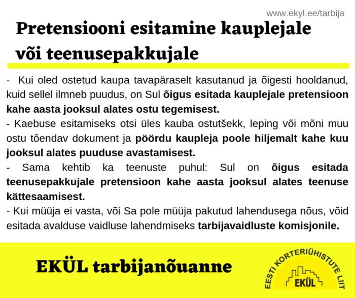 Pretensiooni esitamine kauplejale või teenusepakkujale